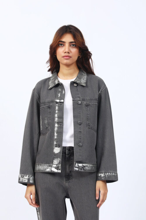 MOCK NECK CONTRAST SLEEVE QUIL...