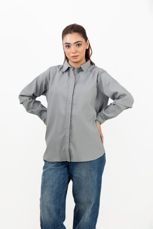 LDS-6466 SHIRT CASUAL CHARCOAL