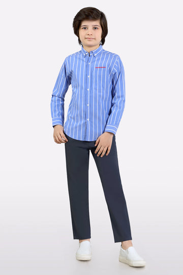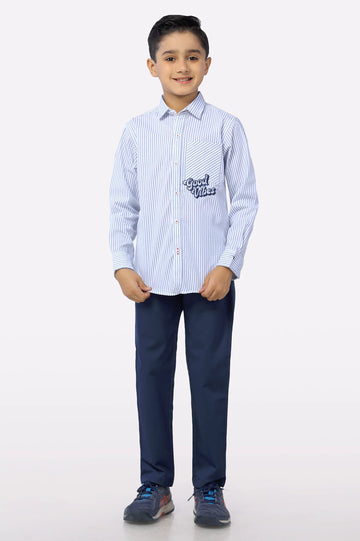 Blue Stipe Textured Boys Shirt