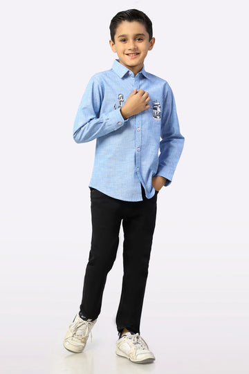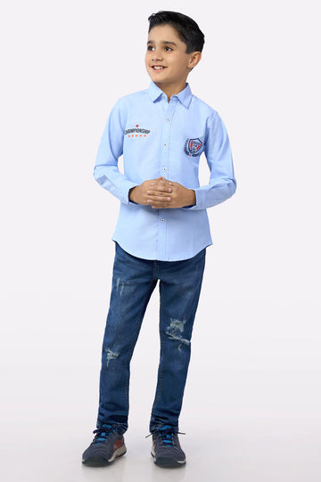 Blue Textured Boys Shirt