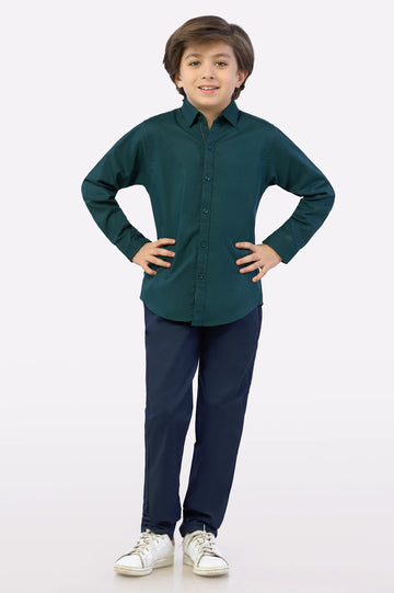 Green Textured Casual Shirt