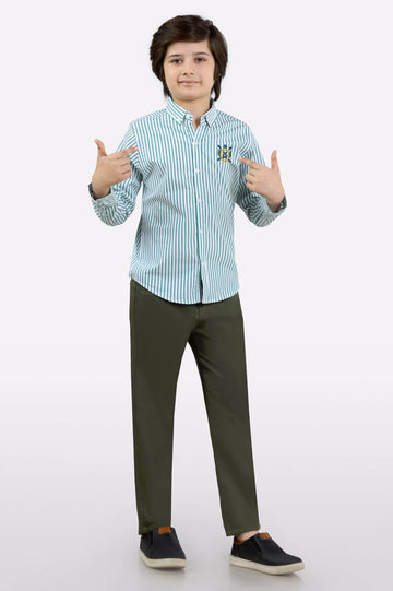 Green Hairline Stripes Casual ...