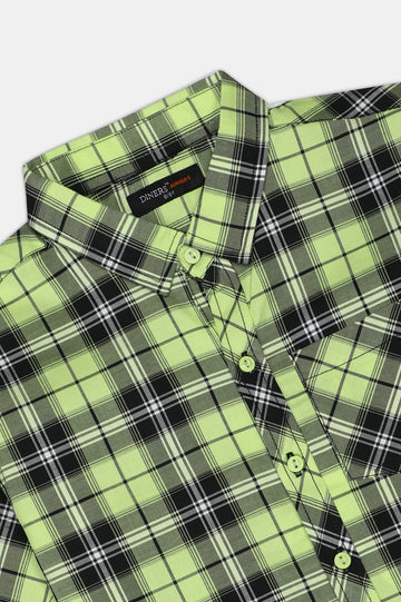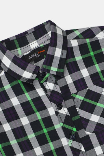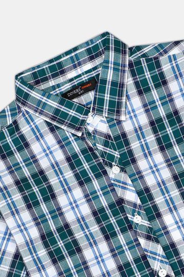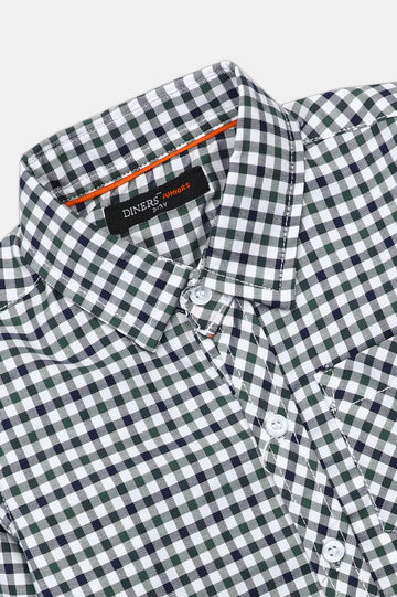 Green Casual Check Boy Shirt