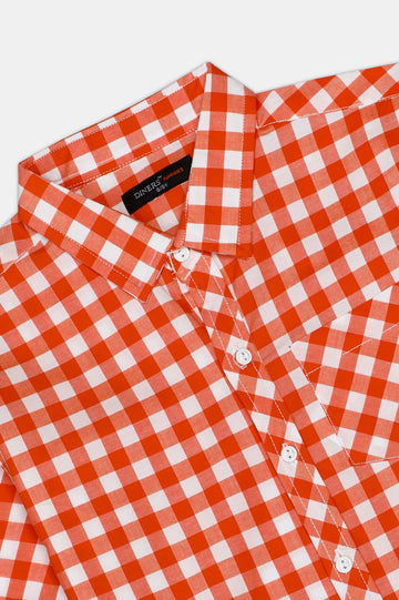 Orange Gingham Check Casual Sh...