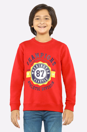 Red Graphic Printed Boys Sweat...
