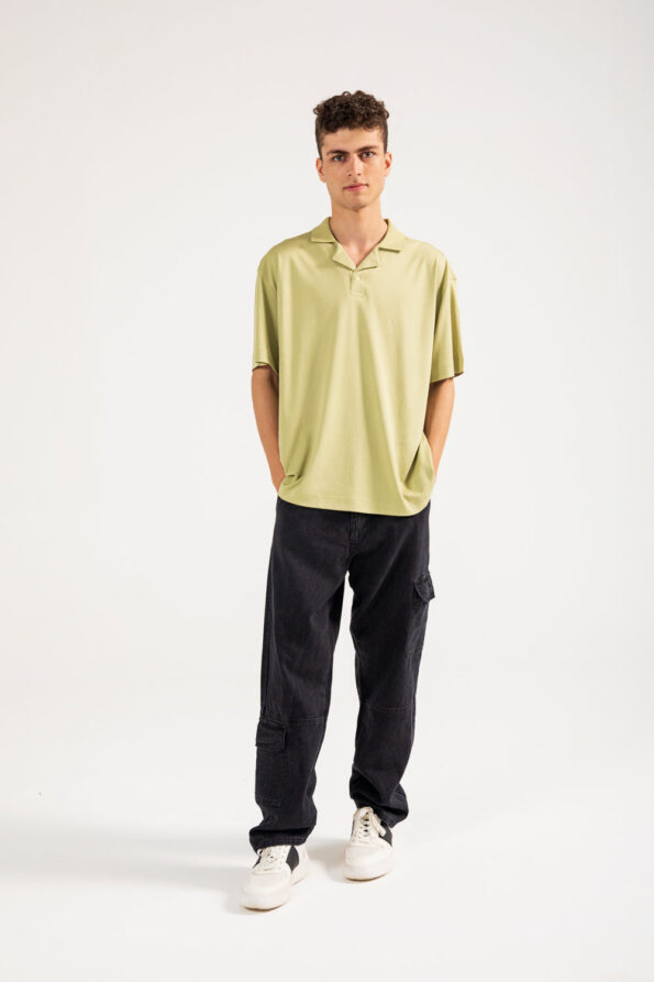 BAGGY FIT TEXTURED JOHNNY COLLAR POLO