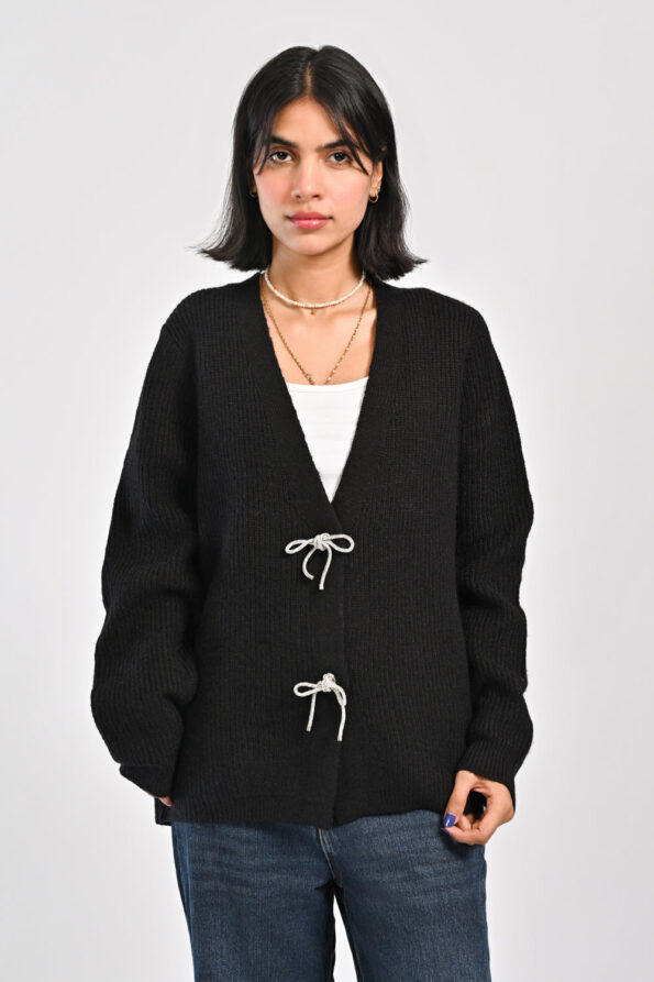 CARDIGAN WITH EMBELLISHED BOW DETAIL