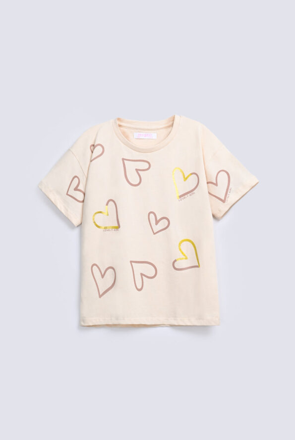 GIRLS BOXY PRINTED HEART T SHIRT