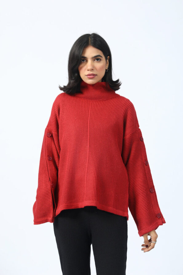 HIGH NECK JUMPER WITH SLEEVE DETAIL