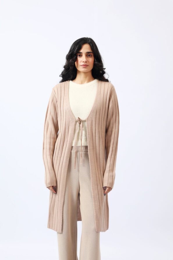 TIE FRONT LONG RIBBED CARDIGAN