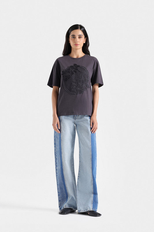 Wide Leg Contrast Jeans